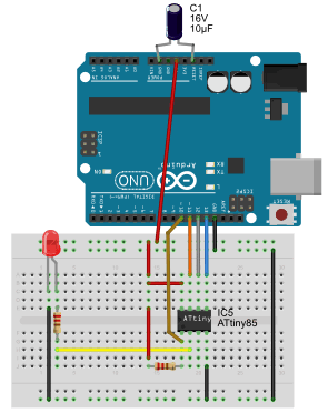 Conecte el Arduino al ATtiny: