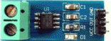 Este dispositivo es muy sencillo, como se aprecia en la imagen de abajo, dispone de tres pines, Vcc, GND y Salida en un extremo y en el otro, dispone de un conector con dos contactos para leer la corriente que pretendemos medir.