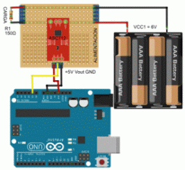 En este artículo describiré cómo conectar un sensor de corriente ACS715 a la placa Arduino, y así leer la corriente que fluye a través del mismo. Una vez más, recomiendo que lea las hojas de características del fabricante. El Allegro® ACS712 proporciona soluciones económicas y precisas para detección de CC o CA en el sector industrial, comercial y sistemas de comunicaciones. El paquete del dispositivo permite una fácil aplicación por parte del cliente. Las aplicaciones típicas incluyen control del motor, detección de carga y gestión, fuentes de alimentación conmutadas, y la protección de fallo por sobre intensidad.