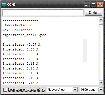 Código de ejemplo para visualizar valores del sensor de corriente, en los terminales de salida.