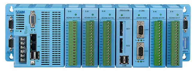 La gama completa de módulos digitales, analógicos y de contador inteligentes incluye las series ADAM 6000 (basada en Ethernet Modbus TCP), ADAM 4000 (basada en RS485 Modbus RTU) y ADAM 2000 (red inalámbrica de sensores de E/S).