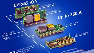 El convertidor de punto de carga de 90 A POL BMR465 puede funcionar como una unidad independiente de 90 A o como parte de un sistema de mayor potencia cuando las placas de procesador requieren una corriente más alta.