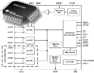 Los convertidores analógico-digitales de 24 bit ADS131A02 y ADS131A04 admiten velocidades de datos de hasta 128 Ksps. Todas las soluciones analógicas frontales (AFE) se envasan en un encapsulado TQFP de 32 patillas y se especifican en el rango de temperatura industrial de -40 °C a + 125 °C.