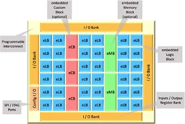 Esta familia de cores IP incluye seis nuevas opciones eFPGA de 4 a 60k puertas ASIC equivalentes, así como bloques DSP. Los cores IP están desarrollados como hard macros con tamaños de array optimizados para bloques lógicos embebidos (eLB), bloques a medida embebidos (eCB) y bloques de memoria embebidos (eMB), cada uno de los cuales se puede personalizar en tipo, número y tamaño para adecuarse a las necesidades de varios mercados.