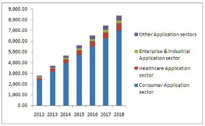 Ingresos del mercado por aplicaciones, 2012-2018 (en millones de dólares).