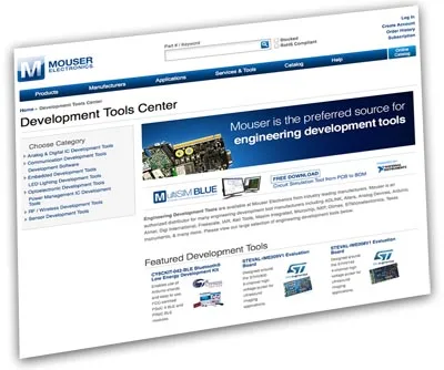 Mouser Electronics, una filial de TTI, y distribuidor global de recursos de ingeniería, semiconductores y componentes electrónicos, ha anunciado la apertura en internet de su nueva web de herramientas de desarrollo online denominada Engineering Development Tools Center, una serie de compiladores, placas de evaluación de desarrollos, emuladores, starter kits, y diseños de referencia que pueden ser encontrados todos en un sólo lugar.
