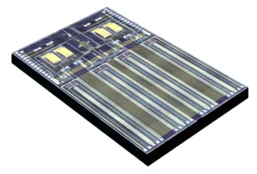 El L-PIC funciona en una fibra óptica monomodo e incluye detectores de tap para alineación de fibra, iniciación de sistema y control de bucle cerrado. Una sola fibra se alinea en el borde del acoplador de este die de 4.1 x 6.5 mm para implementación en aplicaciones con transceptor QSFP28.