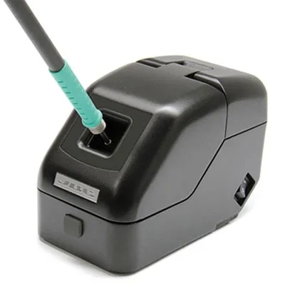 Este sistema de limpieza de puntas de soldadura, que minimiza el deterioro de la punta, también cuenta con un “guardabarros” (splashguard) contribuye a aumentar la seguridad del profesional al eliminar cualquier posibilidad de que salten restos de estaño durante el proceso.