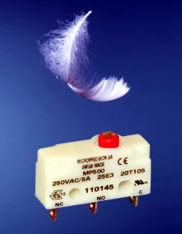 El nuevo micro-switch subminiaturizado para control de presión MP500 posee las aprobaciones UL61058 y EN61058 para una ratio de potencia de 250 AC / 5 A con un rango de temperatura de -40 a +105 °C. Las opciones de terminación incluyen pines de PCB, solder lugs o cable. Para adaptarse a aplicaciones especiales, los actuadores se pueden diseñar a medida.