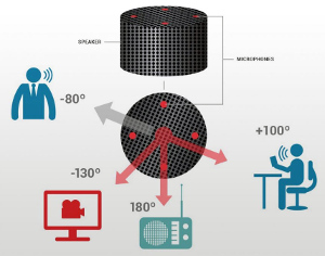 Además, y gracias a la tecnología de Conexant, este micro puede detectar la localización del usuario que le está hablando desde cualquier ángulo alrededor del dispositivo. Dicha funcionalidad de 360 grados se ve posibilitada por cuatro micrófonos de procesamiento de voz.