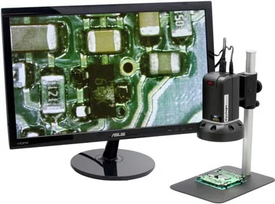 Microscopio de inspección con HDMI y USBEn el modo HDMI, el microscopio de inspección digital Cyclops tiene un rango de aumentos desde 15x a 270x en un monitor de alta definición de 21,5”. Si se utiliza el cable USB para la visualización en el PC, el rango de aumentos se incrementa hasta 534x.