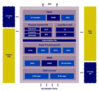 Utilizando una arquitectura VLIW/SIMD escalable, SIMD hasta 128 bits, un pipeline de longitud variable y soporte tanto para operaciones de punto flotante y sin punto flotante, la nueva arquitectura CEVA-X proporciona el doble de la potencia DSP con un consumo que es la mitad que la generación CEVA-X precedente.