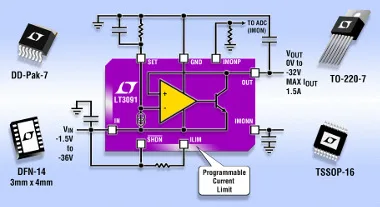 Linear Technology Corporation anuncia el LT3091, la última adición a nuestra gama LDO+ un regulador lineal de baja caída con tensión negativa con funcionamiento rail a rail, límite de corriente programable de precisión, monitor de corriente de salida bidireccional y que produce bajo ruido.
