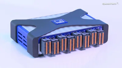 Los módulos QuantumX, montados sobre un chasis, pueden medir docenas de canales con la máxima seguridad, precisión y rapidez y soportar condiciones ambientales adversas (vibraciones, golpes y temperaturas extremas).