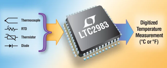 Linear Technology Corporation presenta el sensor de temperatura universal digital de altas prestaciones LTC2983, que digitaliza directamente detectores resistivos de temperatura (RTD), termopares, termistores y diodos externos con una precisión de 0,1°C y una resolución de 0,001°C.