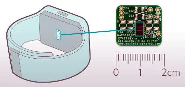 El MAX30102 integra LEDs rojo e infrarrojo (IR) para modular pulsos LED para poder medir la saturación de oxígeno (SpO2) y el ritmo cardíaco. La ratio de sampleo, juntamente con la corriente LED, son programables para facilitar el máximo ahorro energético. El monitor de ritmo cardíaco de baja potencia consume menos de 1 mW, mientras que la corriente de shutdown ultra-baja típica es de 0,7 uA.