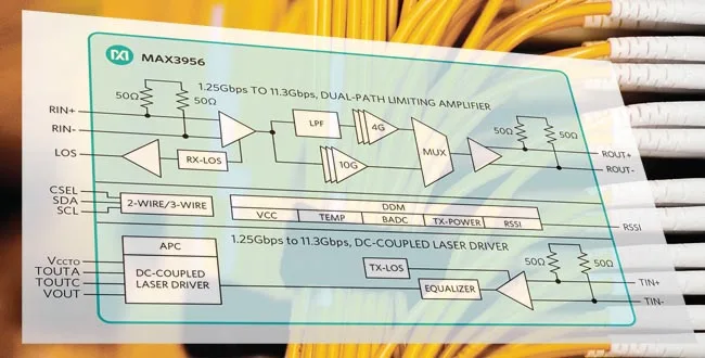 Maxim Integrated Products ha presentado su circuito integrado transceptor óptico Ethernet 10GBASE-LR SFP+ MAX3956 para responder a las necesidades de aquellos desarrolladores que demandan módulos de elevado rendimiento y bajo consumo.